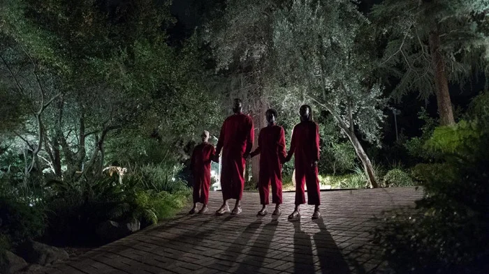 After returning back to the cabin after some eventful incidents, they are encountered by a family who looks identical to themselves, but twisted, dark mirror reflections of them all wearing identical red jumpsuits. It's here that the movie begins to feel like a home invasion genre of horror, like The Strangers. And from here on out the film takes a few more twists and turns and even horror genres before reaching the twisty ending, which I will be discussing here shortly.